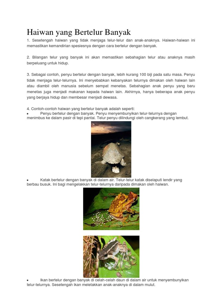 Pilih haiwan yang menyerupai induknya. Mengapakah haiwan bertelur banyak. Antara contoh haiwan yang bertelur sedikit ialah burung manakala katak ialah haiwan yang bertelur banyak.